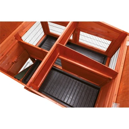 Hüttenzauber bei Trixie: Ställe für Kaninchen und andere Kleintiere sowie nützliches Zubehör finden Sie hier. Der Kleintierstall Natura ist aus lasiertem Kiefernholz gefertigt und mit stabilen, pulverbeschichteten Metallgittern ausgestattet. Das Dach besteht aus besandeter Dachpappe und ist von oben zu öffnen. Die Holzrückwand im Freilaufgehege schützt Ihre geliebten Kleinen vor starkem Wind. Der zweistöckige Kleintierstall bietet verschiedene Rückzugsmöglichkeiten und ist durch die herausziehbare Kunststoffwanne leicht zu reinigen. Die Bodenluke ist mit einer Kunststoffbeschichtung versehen und verschließbar. Durch den geringen Gitterabstand von nur 2 cm ist der Stall auch für die Jungtieraufzucht und zur Kleingruppenhaltung geeignet. Der Trixie Kleintierstall Natura ist Dank der 4 Gittertüren flexibel durch das Freilaufgehege Natura erweiterbar.