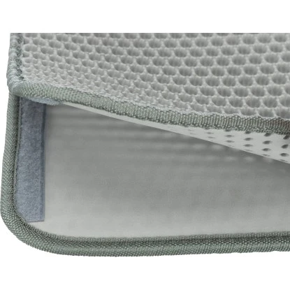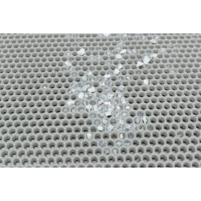 Die Trixie Siebmatte besteht aus 2 Lagen, die durch einen leicht lösenden Klettverschluss miteinander verbunden sind, so dass Ihr Katzenstreu einfach wieder in die Katzentoilette gegeben oder entsorgt werden kann. Die Siebmatte besteht aus formbeständigem Gummi mit Wabenmuster und ist wasser- und urinbeständig. Dank der offenen Kante ist die Matte außerdem leicht zu reinigen und schont die Pfoten Ihrer Katze.