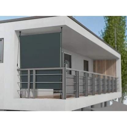 Die Vertikalmarkise dient als idealer Sicht-, Wind- und Sonnenschutz für Ihren überdachten Balkon oder die überdachte Terrasse. Insbesondere für Mietobjekte bietet sich diese Vertikalmarkise an, da sie dank ihrer Klemmmontage ohne Bohrung auskommt. Genießen Sie sorglos und frei von neugierigen Blicken oder störenden Windzügen das schöne Wetter auf Ihrer Terrasse oder Ihrem Balkon. Im schicken Anthrazit passt die Markise harmonisch in nahezu jedes Ambiente.