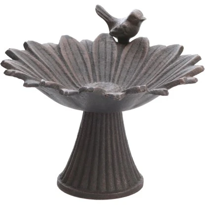 Vogeltränke In Gänseblümchen-Form Mit Vogel Aus Gusseisen In Dunkelbraun 18,5 Cm