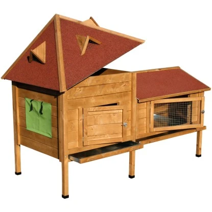 Der herrschaftliche Kleintierstall ist durch das imprägnierte Nadelholz und die Bitumendachpappe wetterfest. Der abgetrennte Turm ist durch die Giebelbauweise sehr geräumig und sorgt für einen permanent gehobenen Aufenthalt Ihrer Nager-Lieblinge. Ein Seitenfenster mit Wetterschutzrollo unterstreicht diese Klasse für sich. Inklusive zweier Fronttüren und zwei herausziehbaren verzinkten Metallschubladen in Turm und Nebenraum. Eine einfache und zeitsparende Reinigung des Anwesens ist so problemlos möglich. Beide Dächer können aufgeklappt werden und ermöglichen so ebenfalls eine optimale Zugänglichkeit.